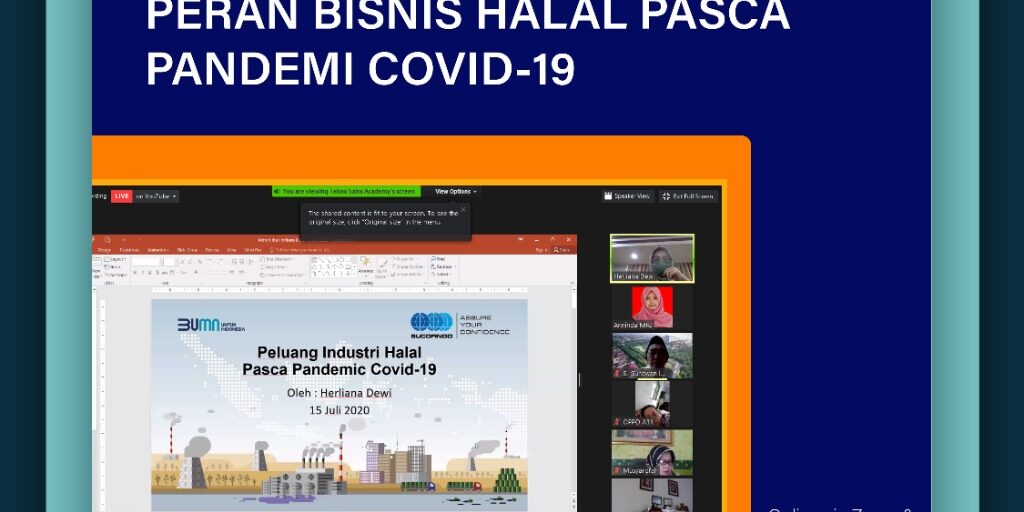 Untuk itu Tekno Sains menyelenggarakan Webinar Halal bertajuk Peran Bisnis Halal Pasca Pandemi Covid-19 dengan pembicara Sitta Rosdaniah ST., M.Sc., Ph.D. (Kepala Bidang Pengembangan Bisnis BUMN), Herliana Dewi ST., M.Si (Direktur Komersial 1 SUCOFINDO). Webinar tersebut diselenggarakan pada Rabu, 15 Juli 2020 pukul 09.00-12.00 melalui media Zoom.